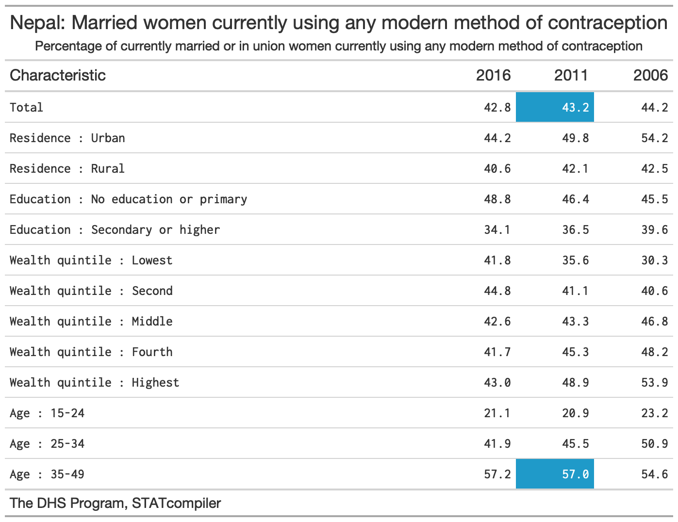 Let’s consider two examples of the type of causal inference that we’ll examine in later chapters. Both examples come from Nepal and feature the issue of modern method use.