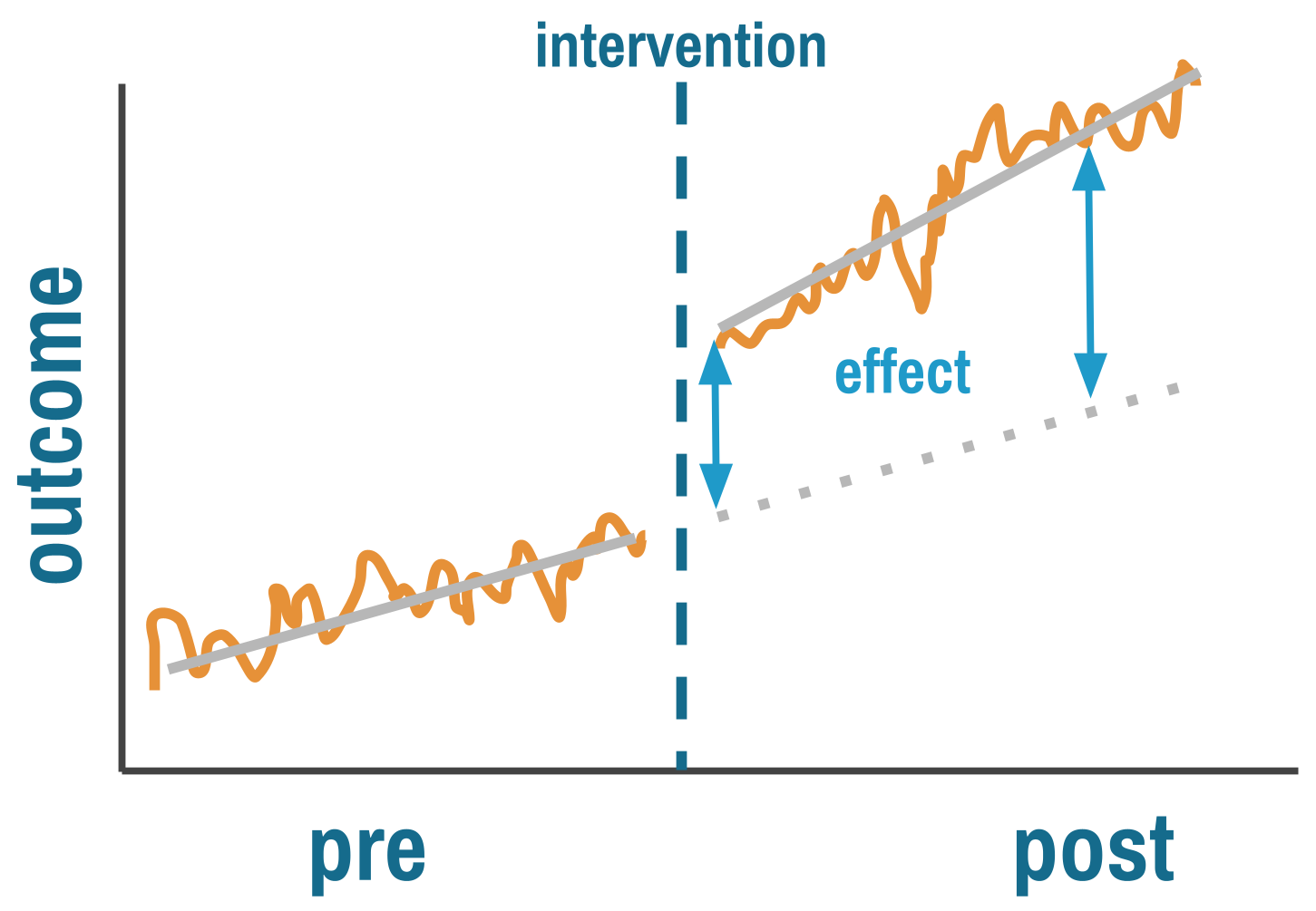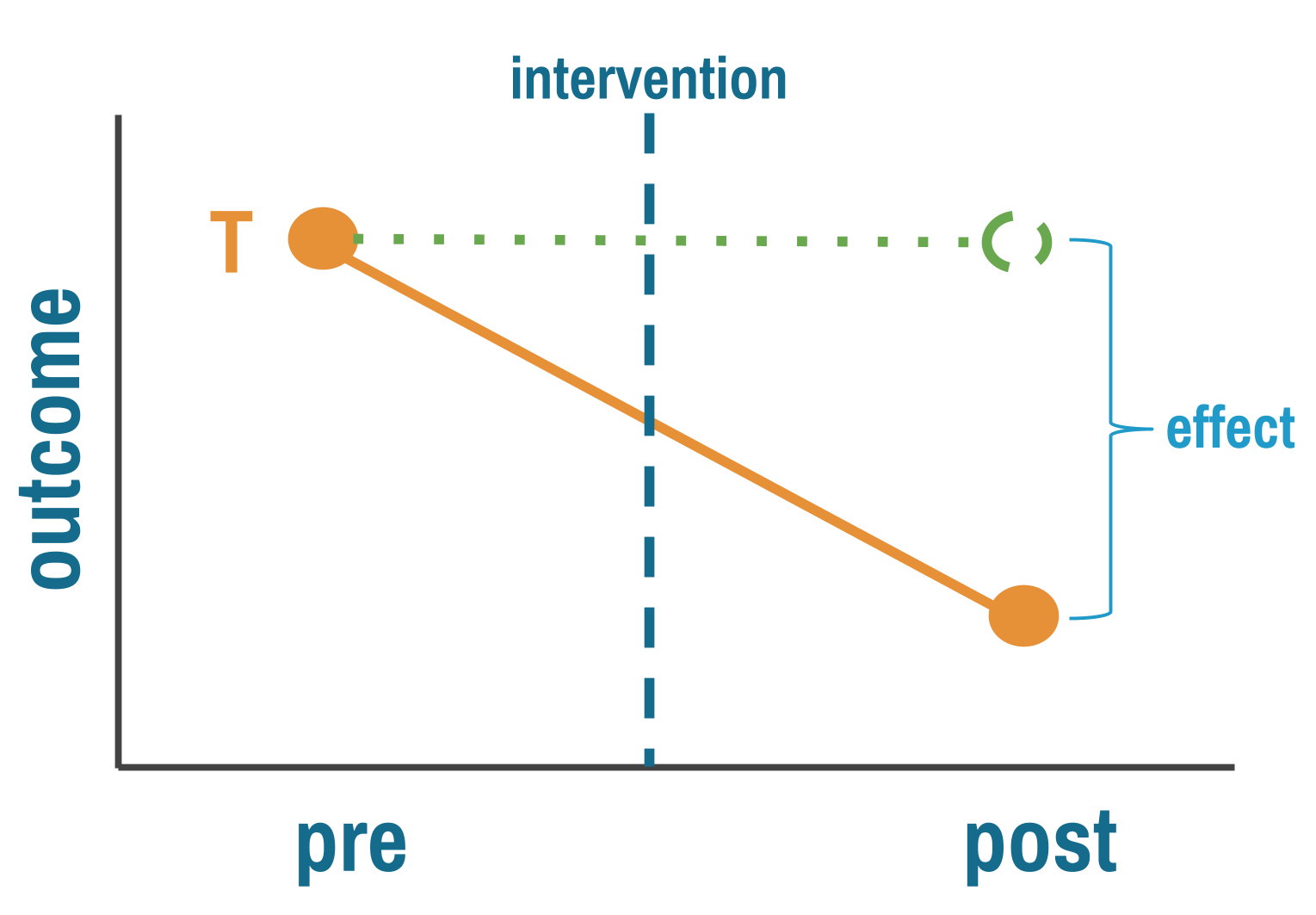Let’s start with the simplest (and weakest) quasi-experimental design: measure an outcome before an intervention, implement the intervention for everyone, then measure the outcome again. If the outcome improved, the intervention worked. Right?